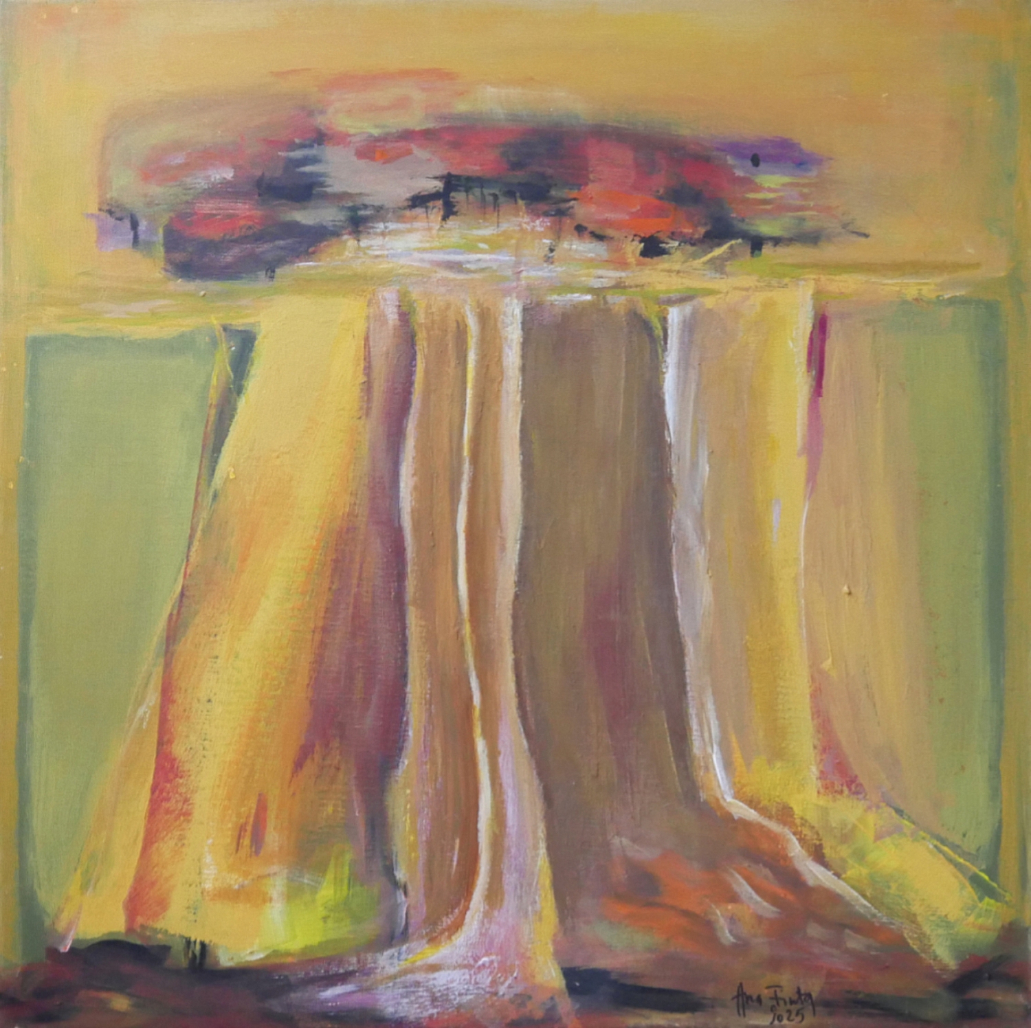 Die Ausstellung vereint zwei künstlerische Positionen, die sich auf unterschiedliche Weise mit Natur und Landschaft auseinandersetzen. Ana Finta arbeitet überwiegend abstrakt und setzt in Malerei und Grafik warme Erd- und Grautöne ein. In ihren Werken steht die materielle Verbundenheit zur Erde im Mittelpunkt. Jana Wilsky kombiniert Malerei, Objekte und Elemente der Land Art. Ihre Arbeiten öffnen Räume, die Weite, Luftigkeit und Bewegung betonen.