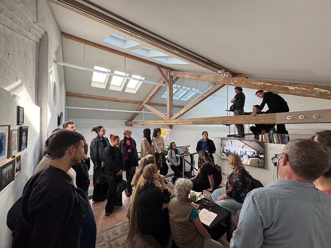 Während der Finissage stellt Medienkünstler Christian Zipfel eine VR-Experience vor, die Teil seines aktuellen Projekts ist. Die Arbeit basiert auf volumetrischen Zeitzeugnissen von Holocaustüberlebenden und macht persönliche Erinnerungen digital zugänglich.