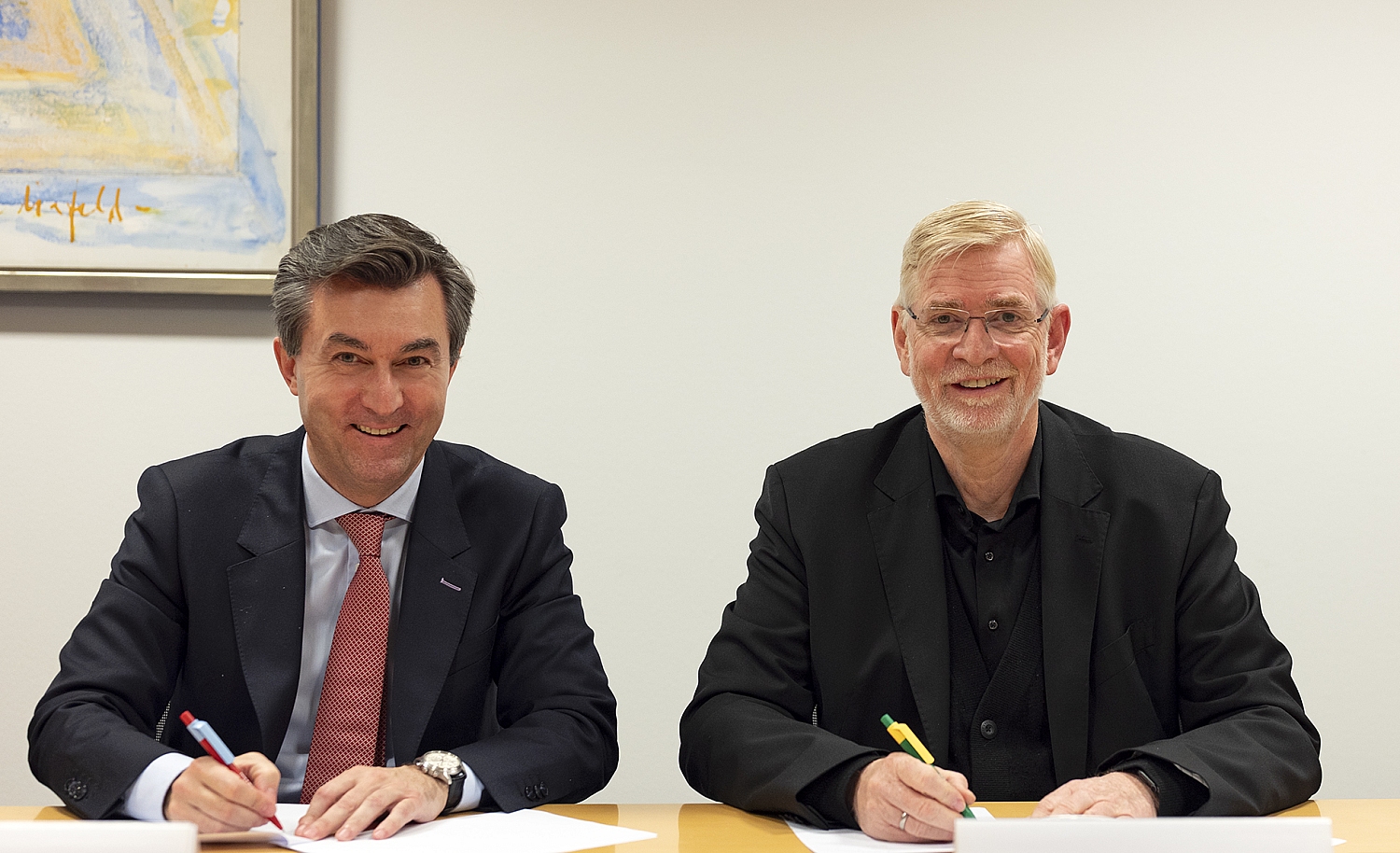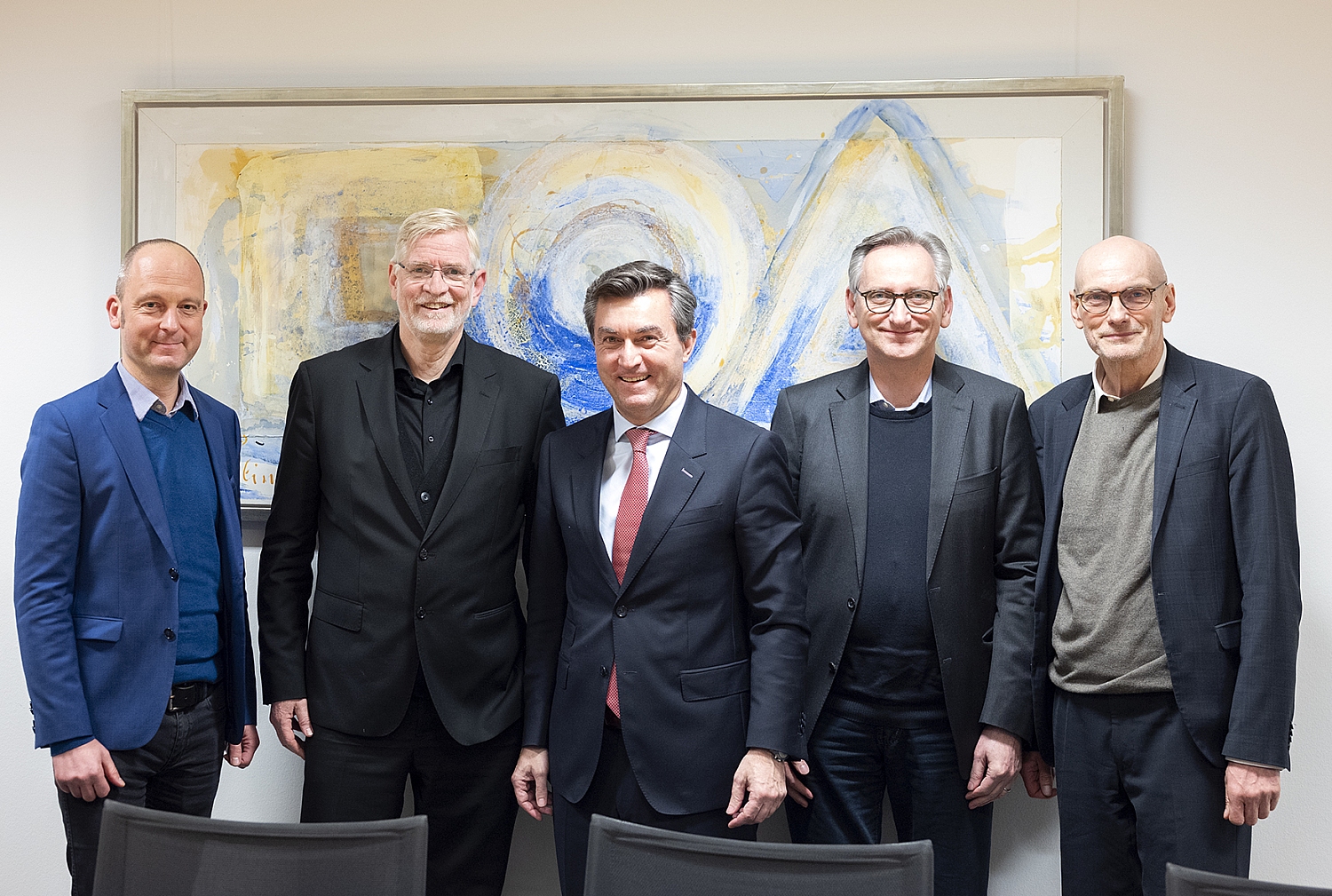 Gruppenfoto (v.l.) Oliver Stübing (Geschäftsführer Poliklinik Ernst von Bergmann), Prof. h.c. (BUK) Hans-Ulrich Schmidt (Kaufmännischer Vorstand der Stiftung Evangelisches Diakonissenhaus Berlin Teltow Lehnin), Tomislav Gmajnic (Geschäftsführer Klinikum Ernst von Bergmann), Dr. Ottmar Schmidt (Geschäftsführer, Evangelisches Krankenhaus Ludwigsfelde-Teltow), Dr. Christian Kieser (Ärztlicher Direktor, Klinikum Ernst von Bergmann), © KlinikumEvB 2026