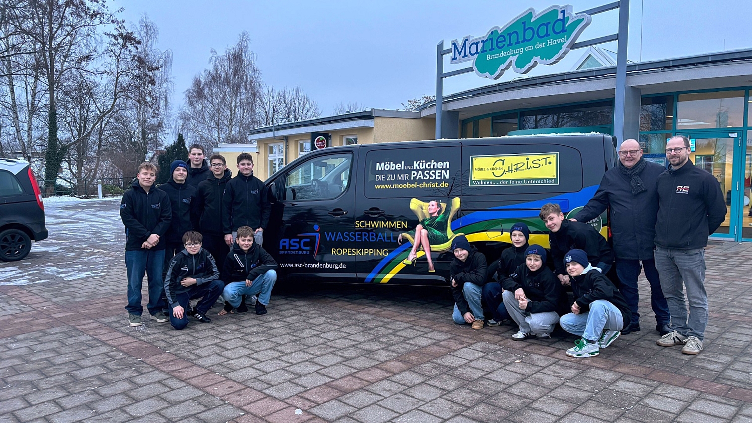 Sponsoring 2026 für die Wasserballer des ASC Brandenburg und die Fußballer des BSC Süd 05 aus Brandenburg a.d. Havel. Auch in diesem Jahr ist CHRIST wieder mit großartiger Unterstützung vieler Vereine in unserer Region präsent. So wurden am 29. Januar die neuen Kleinbusse an die o.g. Vereine übergeben. Dabei übernimmt das Möbelhaus aus Werder/Havel die kompletten Kosten für die Neuanschaffung des Fahrzeuges vom ASC und die Beschriftung des Busses vom BSC Süd 05.