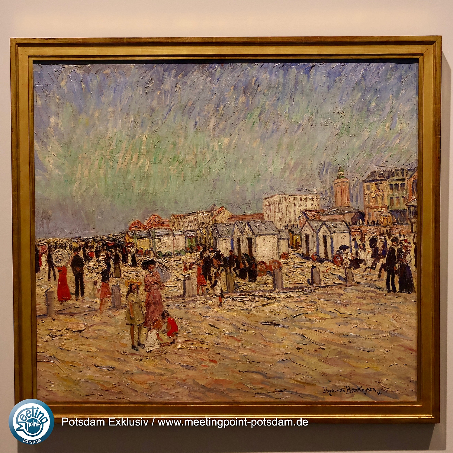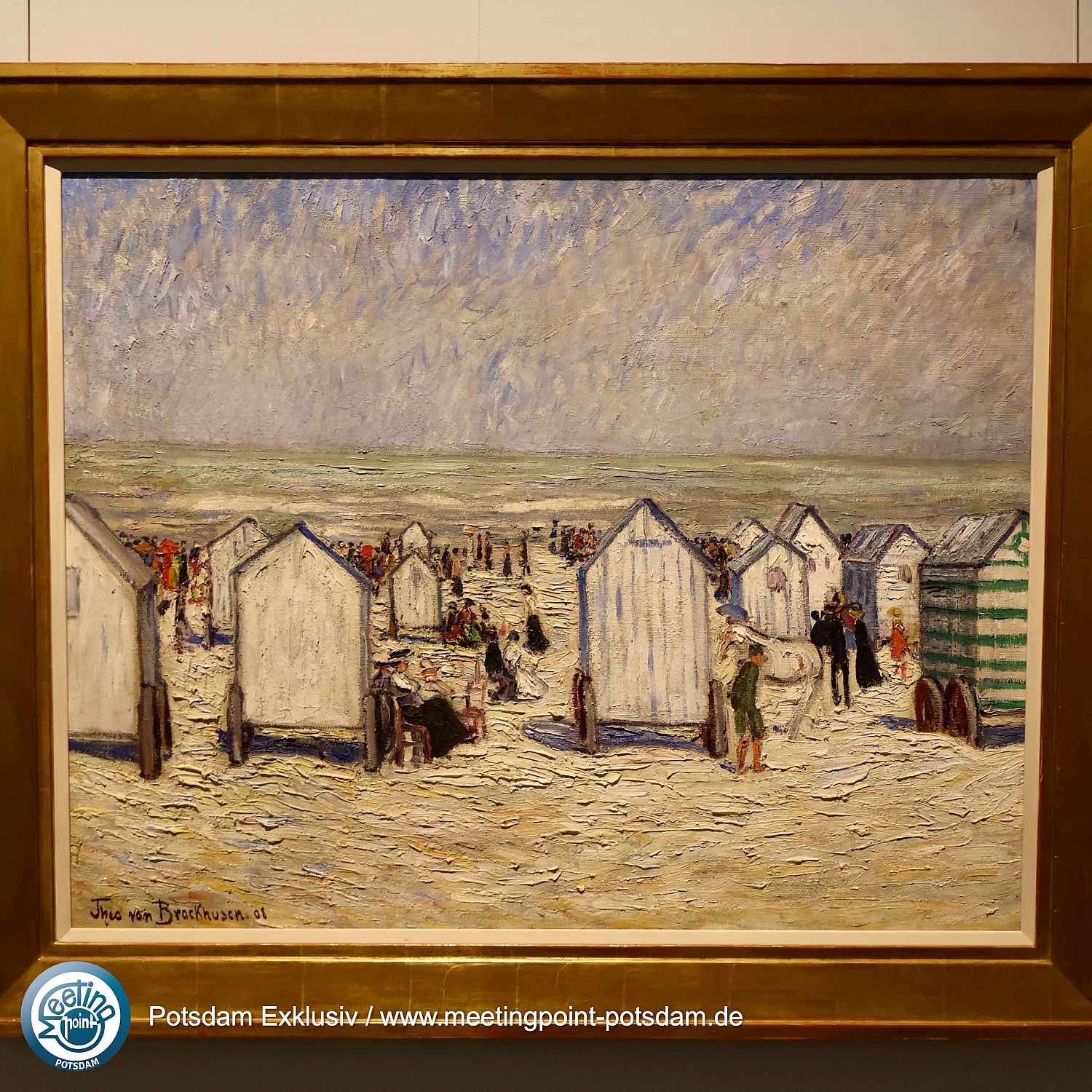 Sein Hauptwerk entstand zwischen 1905 und 1910. Brockhusen reiste gern, lebte zeitweise in Belgien und Italien und malte dort. Dort entstanden seine Werke, die im ersten Ausstellungsraum zu sehen sind: Strandszenen der damaligen Zeit im belgischen Knokke.