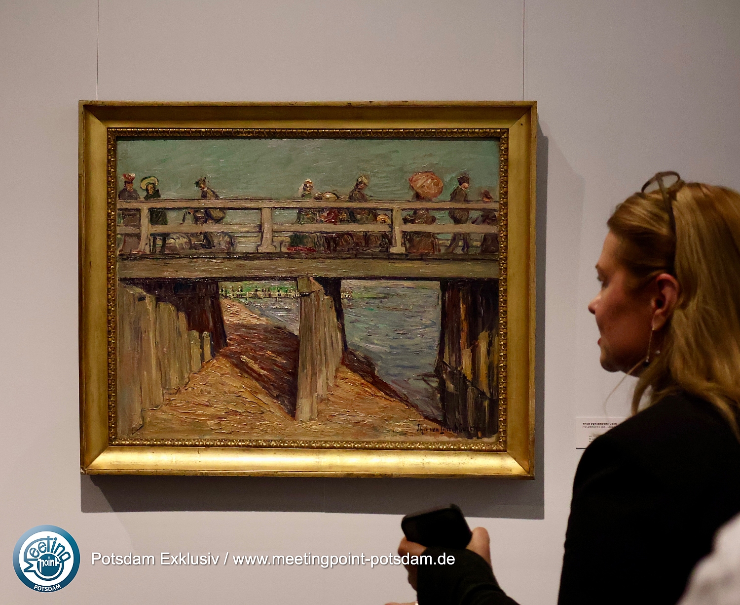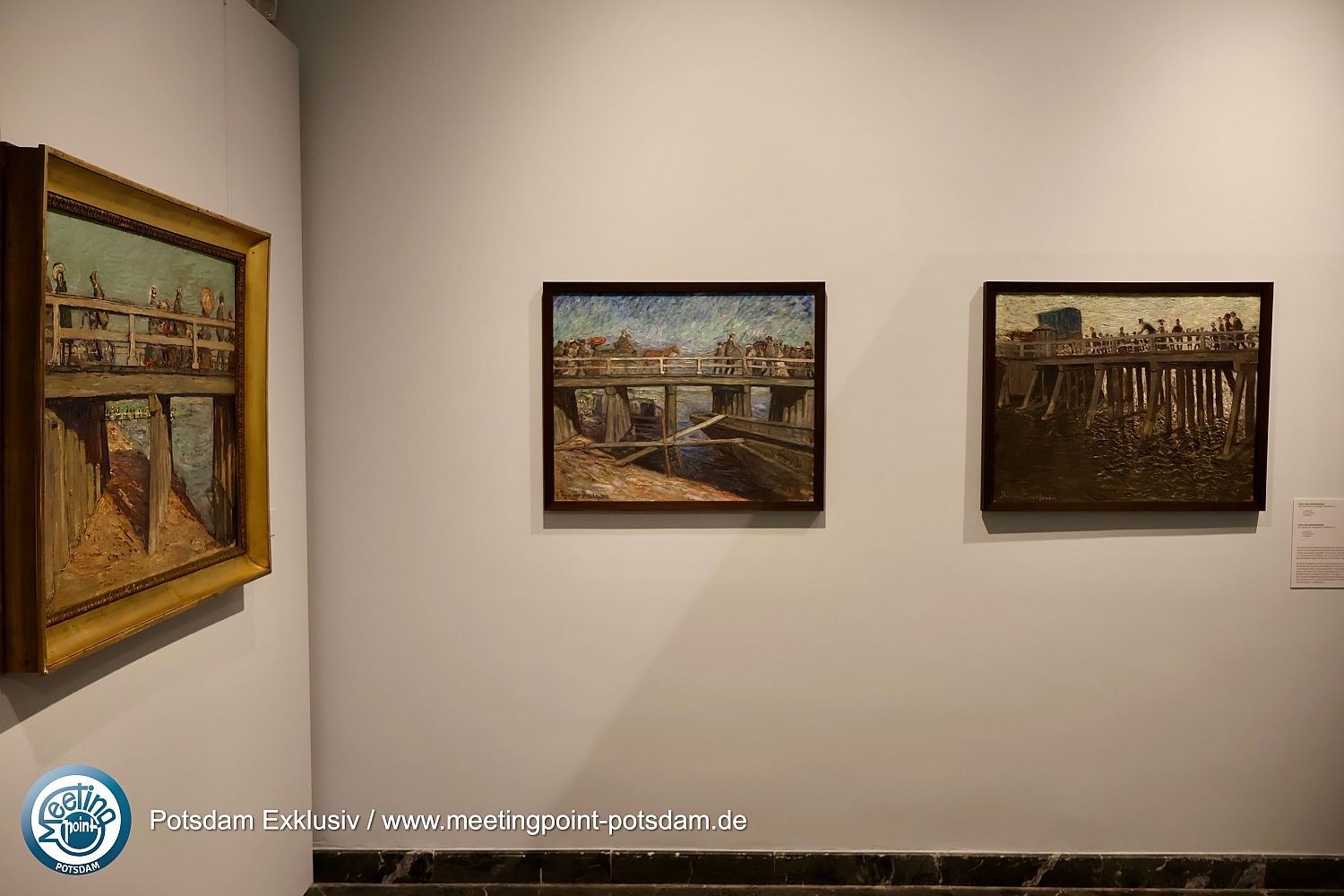 Im ersten Raum begegnen den Besuchern Strand- und Szenenbilder aus dem belgischen Knokke. Es folgen Brandenburger Landschaften, etwa aus dem Oderbruch bei Seelow – jener Gegend, in der Brockhusen auch seine Frau kennenlernte, die er 1909 heiratete. Ein besonderer Höhepunkt sind zwei bislang nie öffentlich gezeigte Bilder von Baumgartenbrück und seiner damaligen Holzbrücke.