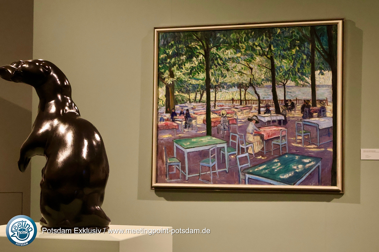 In der Rotunde widmet sich die Ausstellung dem Biergarten- und Ausflugsmilieu. Damals wie heute zog es die Berliner ins Umland, nach Wannsee oder Baumgartenbrück. „Es sind Bilder des Verweilens“, merkte die Kuratorin an – Momentaufnahmen des Innehaltens und Genießens.
