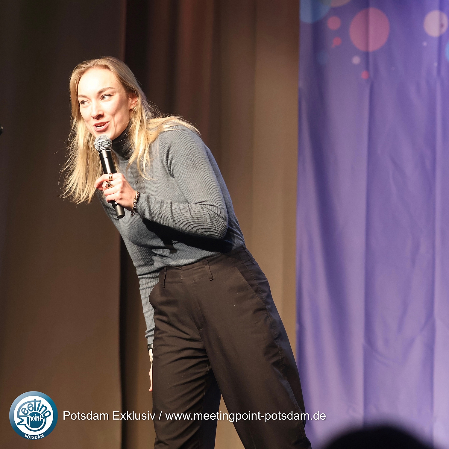 Jacky Feldmann, die aus dem Sauerland stammt und heute in Berlin lebt, nahm aktuelle Trends aufs Korn – von veganer Lebensweise bis zur Kreuzfahrtromantik. Ihre Realsatire speist sich aus dem ganz normalen Wahnsinn, der ihr täglich in Bus und Bahn begegnet. Mit spontanen Interaktionen und schlagfertigen Reaktionen auf Zurufe aus dem Publikum bewies die ehemalige Finanzbeamtin ihr komödiantisches Talent.