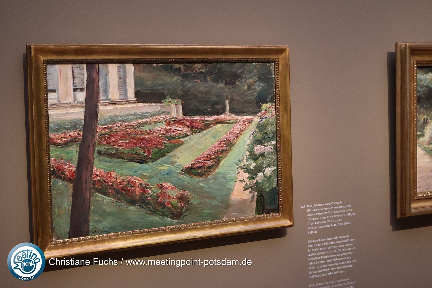 Ein ganzer Raum ist der Gartenwelt gewidmet, die Liebermann so häufig malte. Außerdem präsentiert die Ausstellung eine Reihe von Biergarten-Bildern und zeigt damit, wie die moderne Stadt das Freizeitverhalten ihrer Bewohner beeinflusste. Da gerade Liebermann diese Szenerien als Berliner zumeist in Berlin malte, ist die Ausstellung auch eine Hommage an Berlin als moderne Stadt zur Wende des 20. Jahrhunderts, aber auch eine Hommage an Garten und Natur.