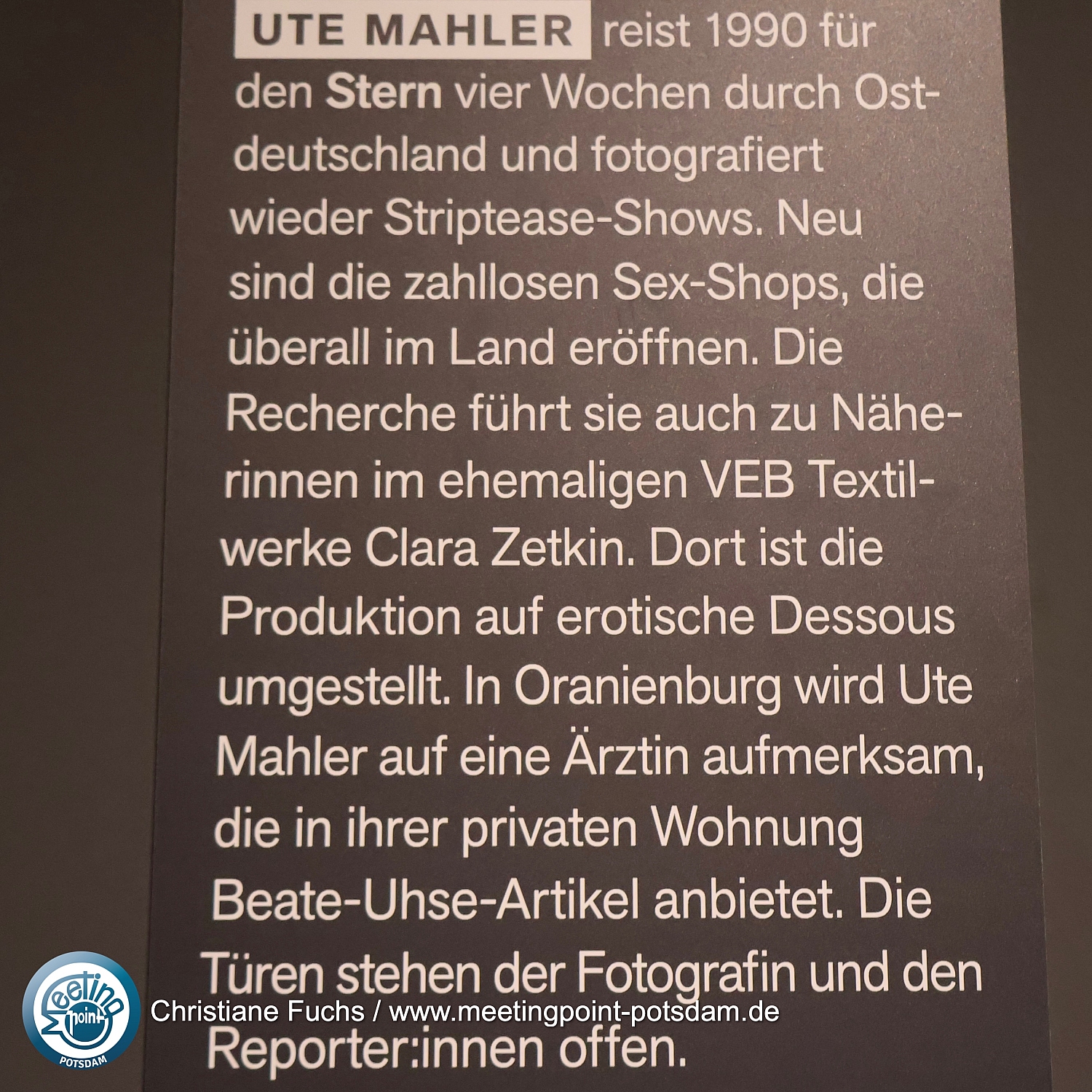 Sowohl persönlich, wie Tina Bara aus Kleinmachnow, die die DDR im Juli 1989 verließ, als auch künstlerisch und sozialdokumentarisch haben diese Fotografen das Weite gesucht, wie Ute Mahler, die 1990 zusammen mit sechs Künstlerkollegen die Ostkreuz - Agentur für Fotografen gründete.