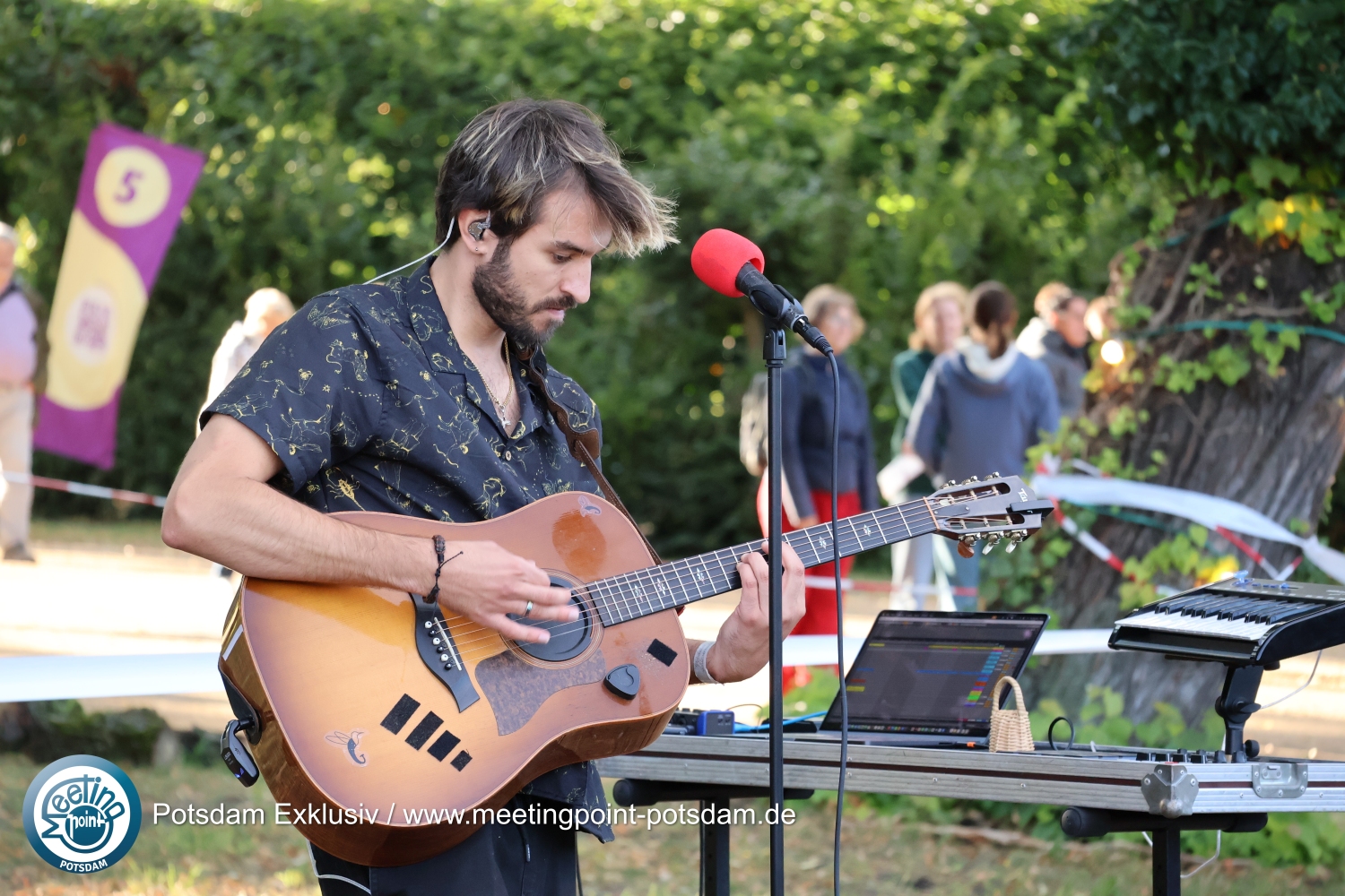 An anderen Orten wurde mehr musiziert als getanzt. Besonders beeindruckend PlaGu, ein Singer-Songwriter aus Bayern, der mit seiner Gitarre und deutschen Texten einen akustischen, handgemachten Sound am Neuen Palais präsentierte.