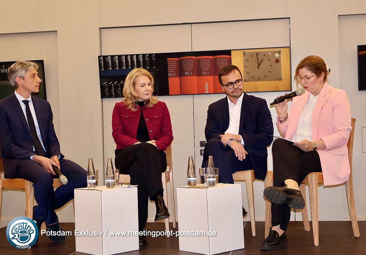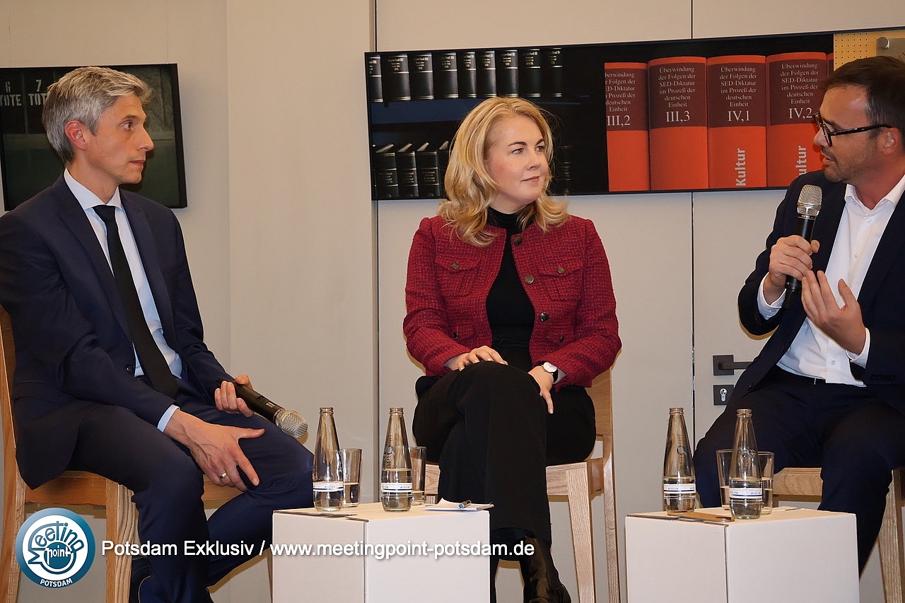In der anschließenden Podiumsdiskussion mit Dr. Jan Redmann, Vorsitzender der CDU Brandenburg, und Linda Teuteberg, FDP, sowie Daphne Wolter von der Konrad-Adenauer-Stiftung wurden die gegenwärtigen und zukünftigen Fragen erörtert: Wie ist den aktuellen politischen Herausforderungen zu begegnen und welche Perspektiven hat die bürgerliche Mitte in Brandenburg?
