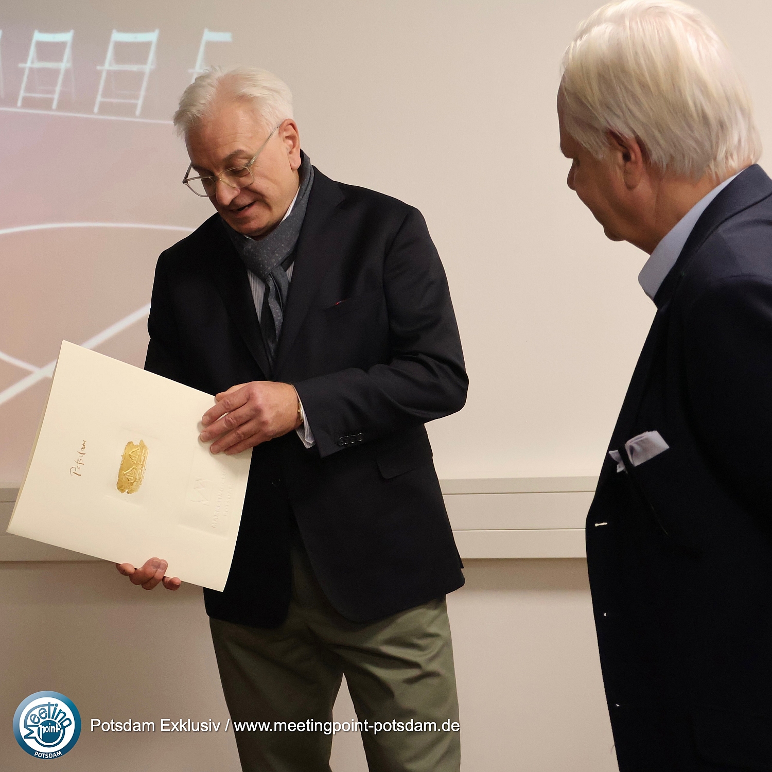 Wie üblich überreichte der Präsident des MCP, Götz Friederich, eine besondere Malerei des Potsdamer Künstlers Christian Heinze an den Gastgeber Tobias Bachmüller.