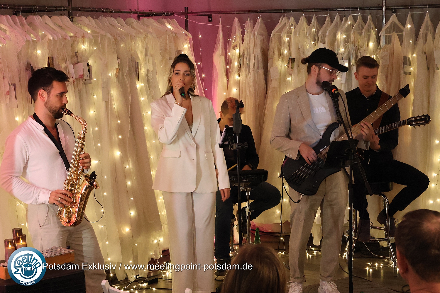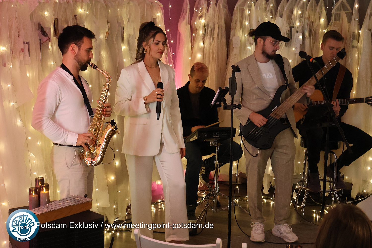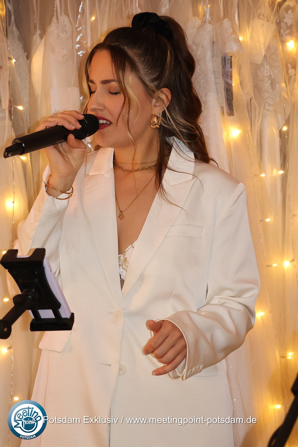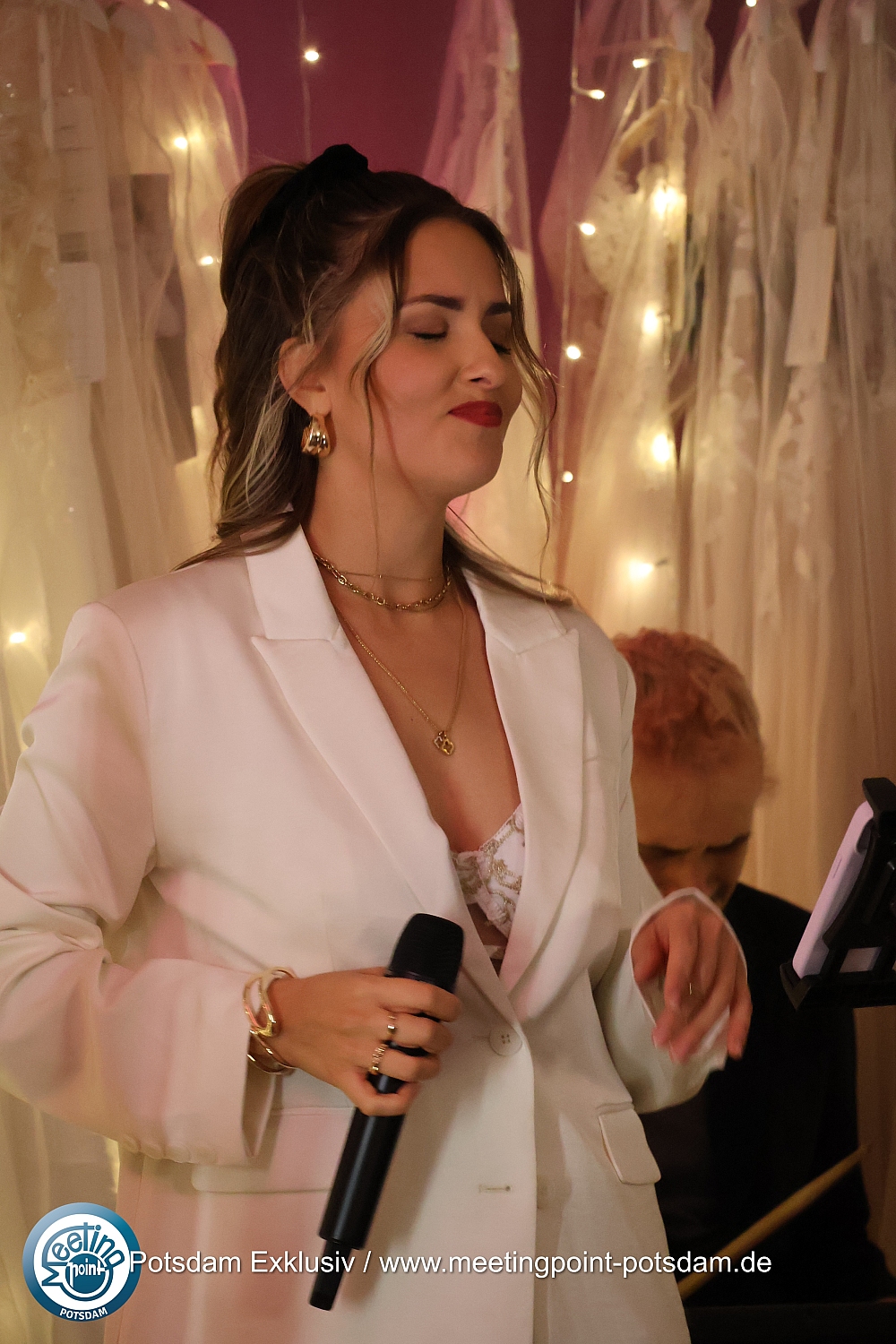 Mandy Dübner, die Inhaberin des Bride Eyes Stores, freute sich, den jungen Künstlern eine Bühne zu geben. „Ich kenne Lara schon lange. Sie hat auf vergangenen Modenschauen regelmäßig meine Brautmode präsentiert. Gesungen hat sie damals auch schon. Ich freue mich, ihr und der Band heute in meinem Geschäft eine Bühne geben zu können, um sich einem ausgewählten privaten Kreis präsentieren zu können.“