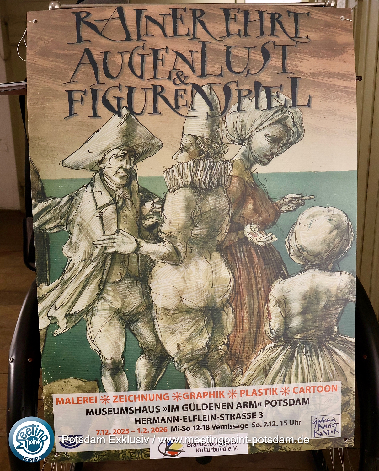 Die Ausstellung mit dem Titel „Augenlust und Figurenspiel“ findet in Kooperation mit der Galerie KUNST-KONTOR aus dem Potsdamer Bertiniweg statt.