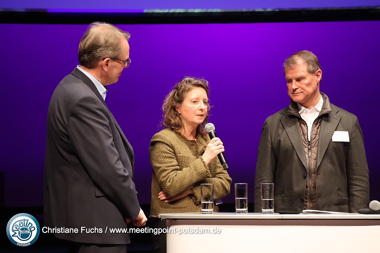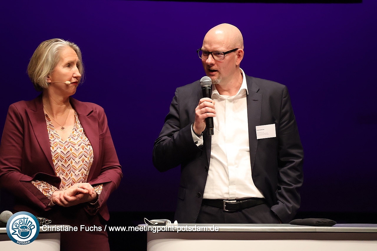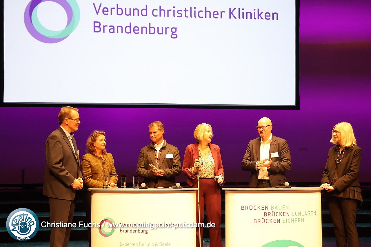 Stambulante Prozesse organisierenIn einer halbstündigen Podiumsdiskussion beleuchteten Michael Zaske, Abteilungsleiter Gesundheit, Ministerium Gesundheit und Soziales, Frank Volkmer, Geschäftsführer Immanuel Klinik und Poliklinik Rüdersdorf, Dr. med. Kerstin Stahlhut, Chefärztin Palliativmedizin Immanuel Klinik Rüdersdorf, Dr. med. Gesine Dörr, Chefärztin Klinik für Innere Medizin am St. Josefs-Krankenhaus Potsdam und Holger Rostek, stellvertretender Vorsitzender des Vorstandes der Kassenärztlichen Vereinigung Brandenburg die stambulante Versorgungssituation in Brandenburg.